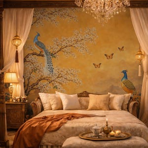 Transform your space into a tranquil and timeless oasis with our stunning Chinoiserie wallpaper. This captivating mural features a delicate, light background adorned with intricate trees, a classic pagoda by a lake, and graceful cranes. The vintage-inspired style and soft color palette evoke a sense of serene elegance and sophistication, making it a perfect statement piece for a bedroom, living room, or entryway.