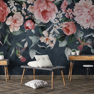 Watercolor Floral Wallpaper | Pink Pastel Flowers Wall Mural, Removable Peel and Stick