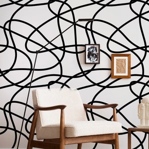 Abstract Wallpaper | Black and White Line Art Wall Mural | Removable Peel and Stick