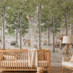 Nursery Safari Wallpaper | Kids Jungle Animals Wall Mural | Peel and Stick