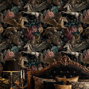 Oversized Moody Dark Floral Wallpaper | Vintage Botanical Wall Mural | Removable Peel and Stick