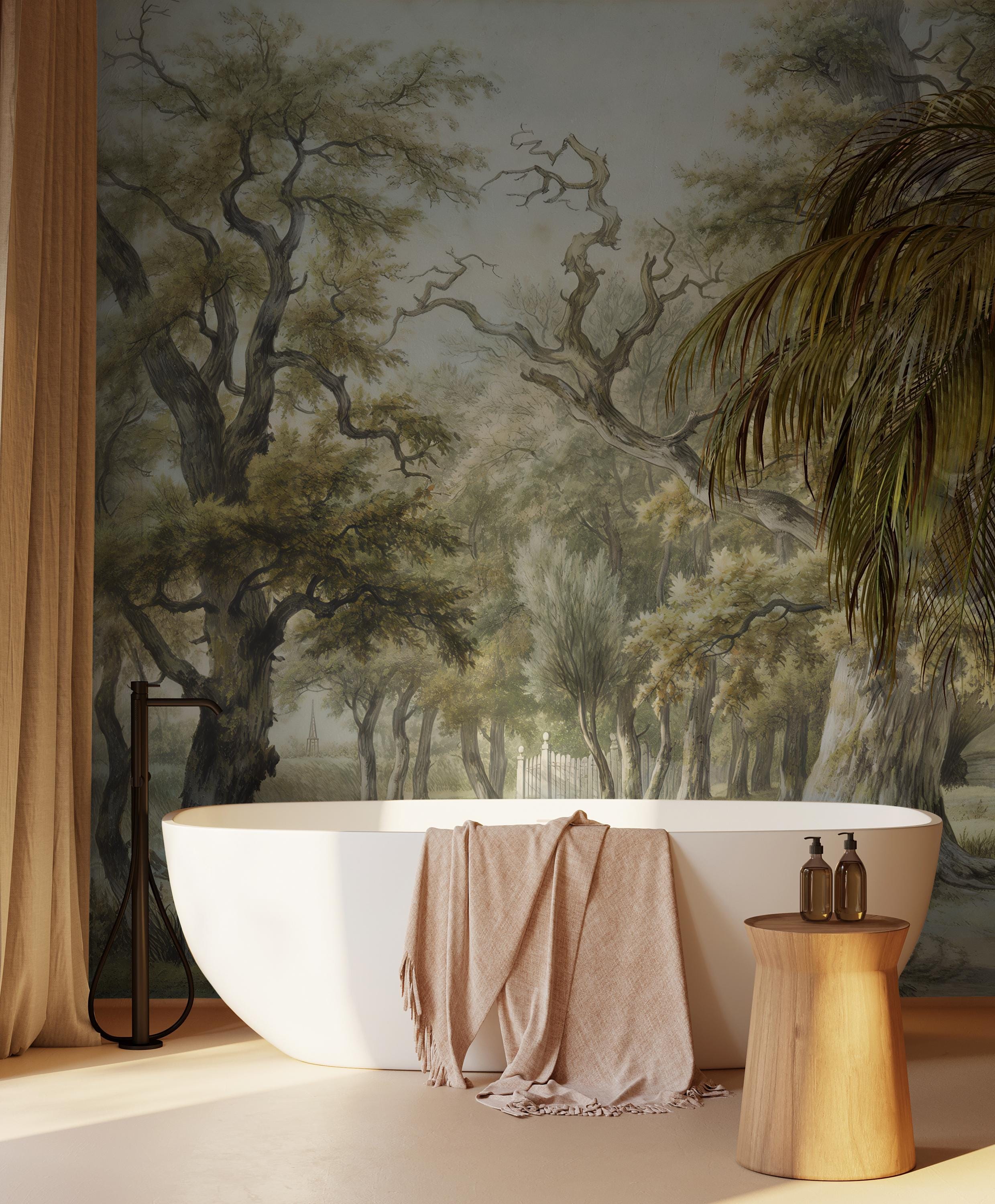 Vintage Forest Landscape Wallpaper: Scenic Trees Wall Mural (Peel and Stick)
