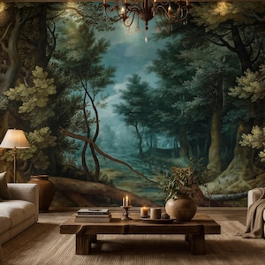 Transform your space into a luxurious and intellectual sanctuary with our stunning classical landscape wallpaper. This captivating mural features a soft, painterly scene of a serene river, lush green trees, and distant hills, reminiscent of 18th-century European landscape paintings. The rich, calming tones and artistic style create a sophisticated and artistic atmosphere, making it a perfect statement piece for a living room, study, or elegant dining area.