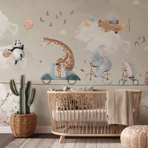 Toile de Jouy Girls Nursery Wallpaper | Safari Adventure Wall Mural | Removable Peel and Stick