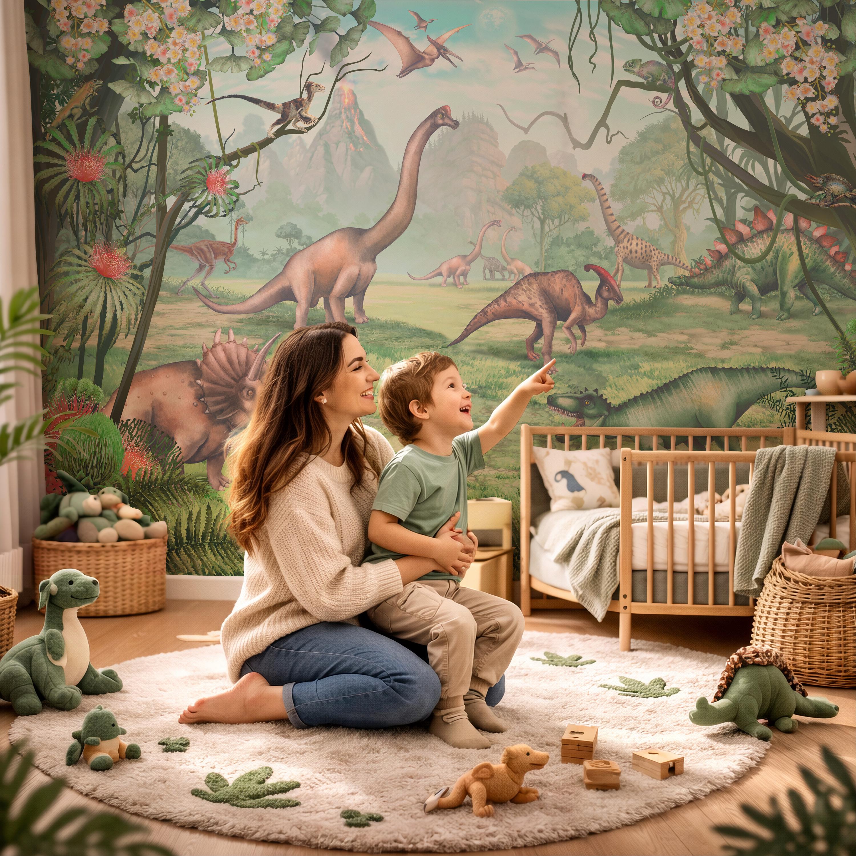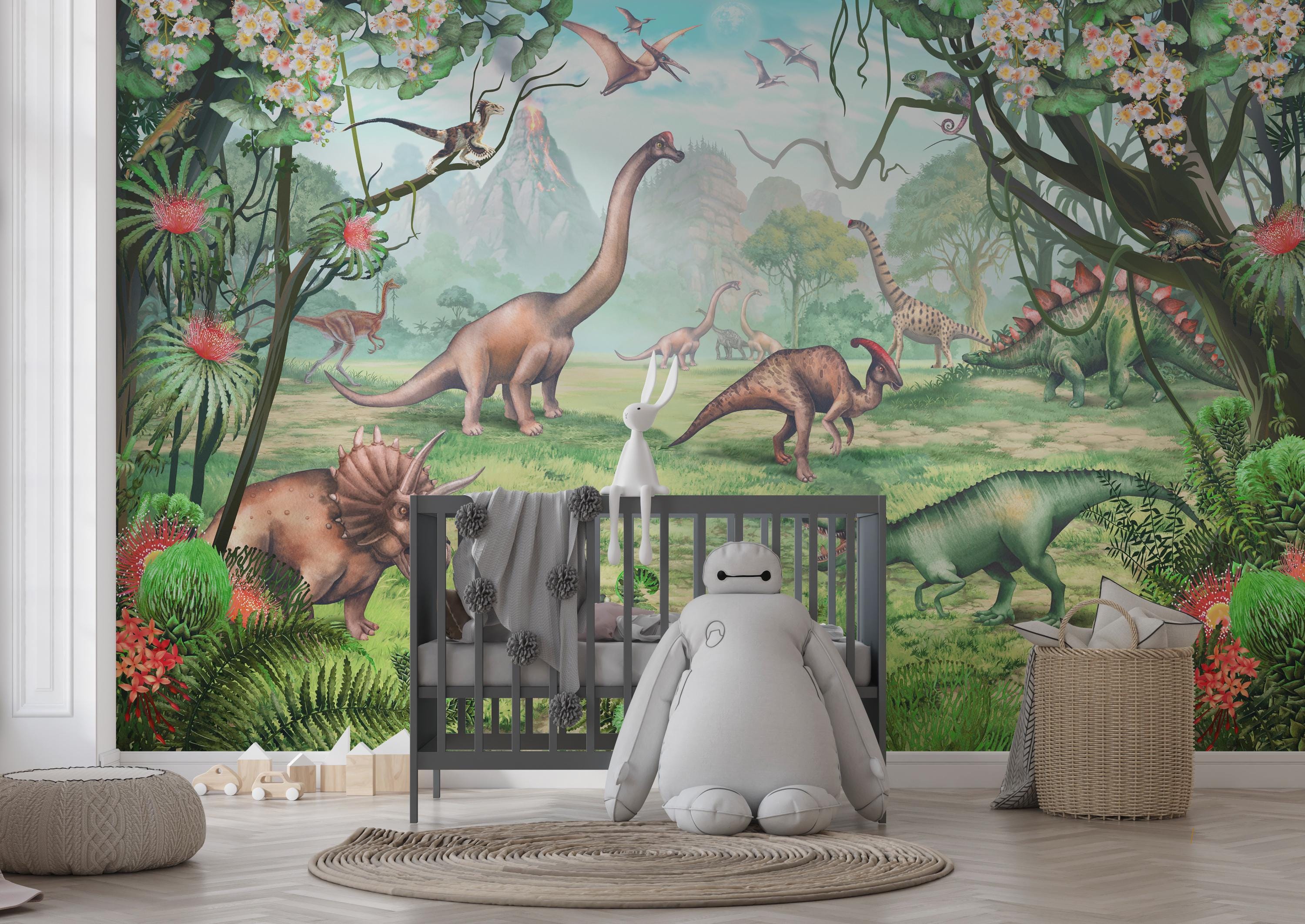 Kids Wallpaper, Dinosaur Jungle Wall Mural Dino Nursery Decor, Peel and Stick Wallpaper