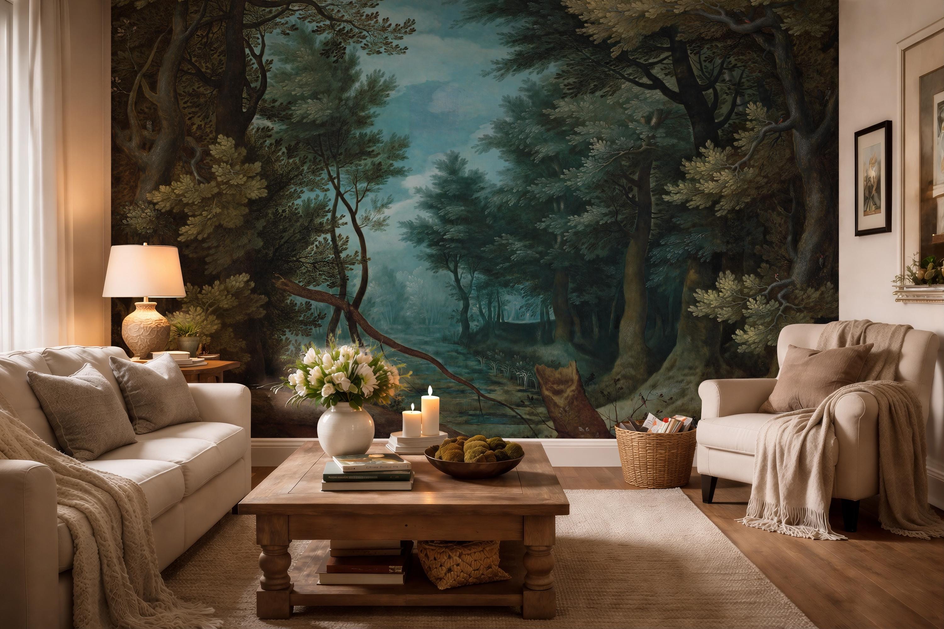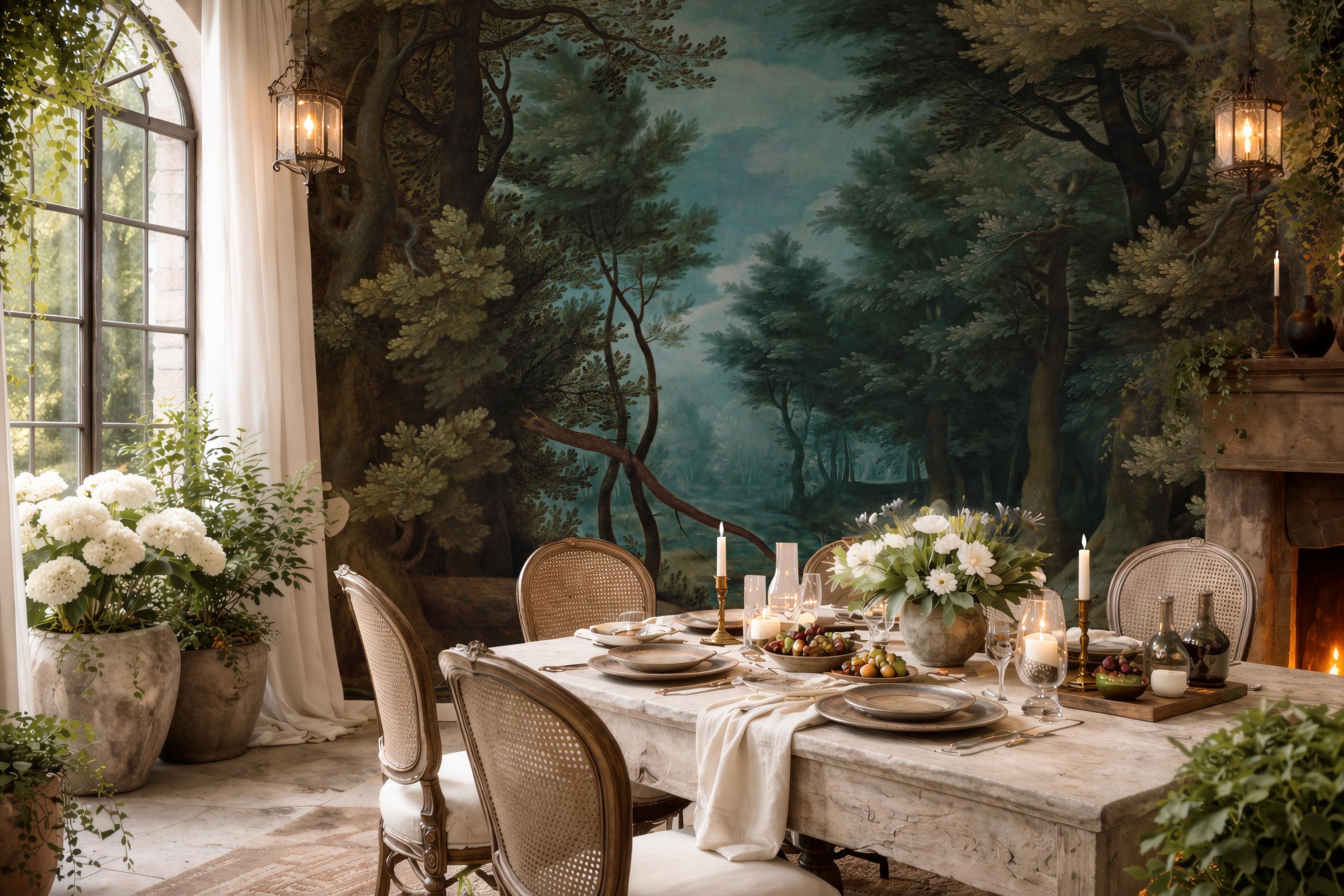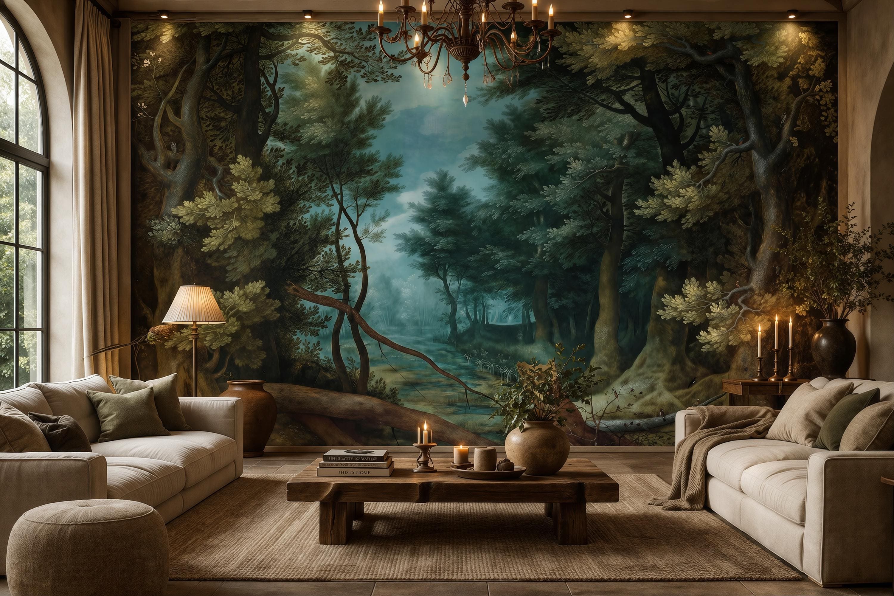Inspired by vintage landscapes and natural woodland scenes, this design adds a timeless, artistic feel while maintaining a modern, high-end aesthetic.