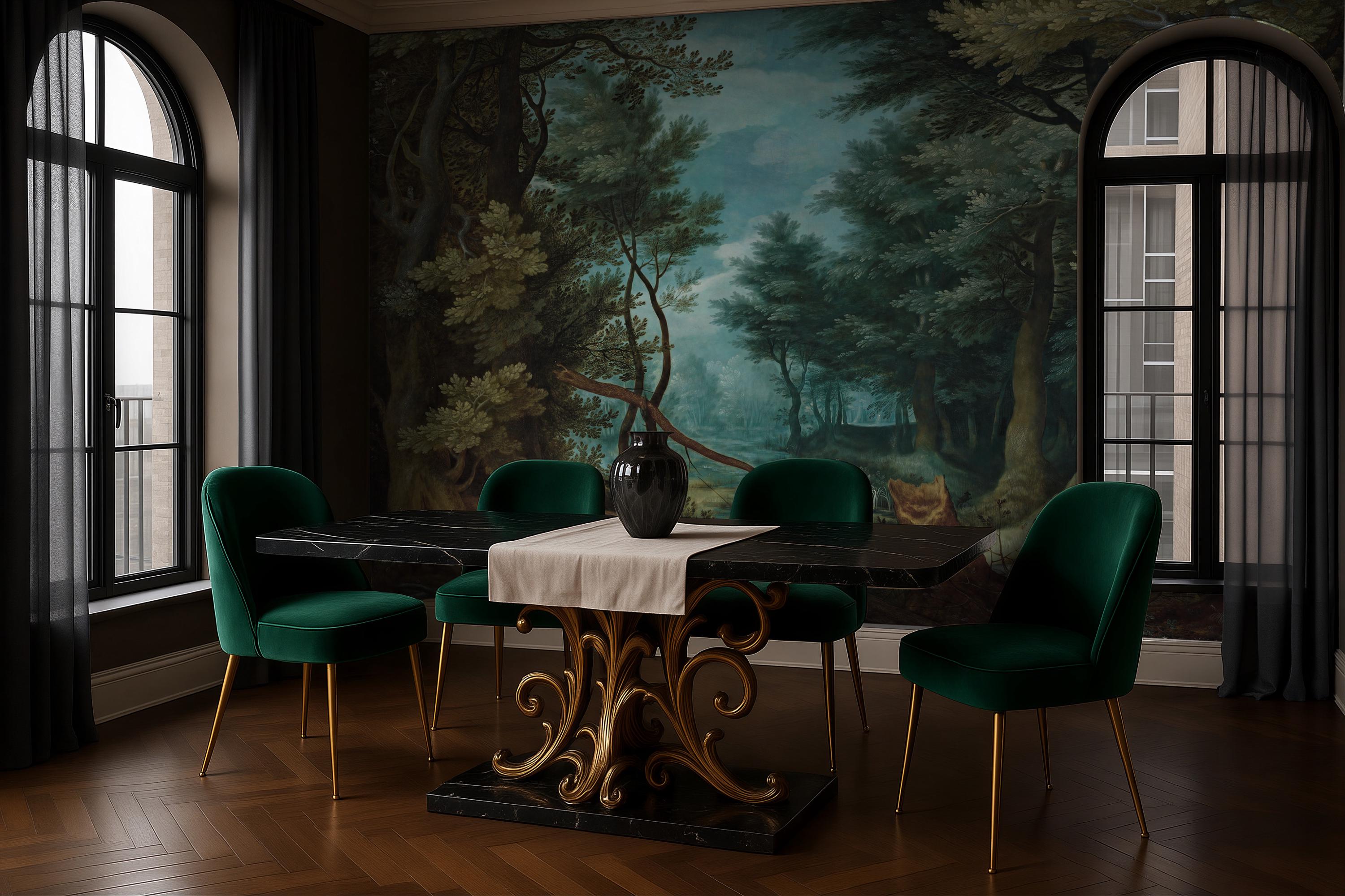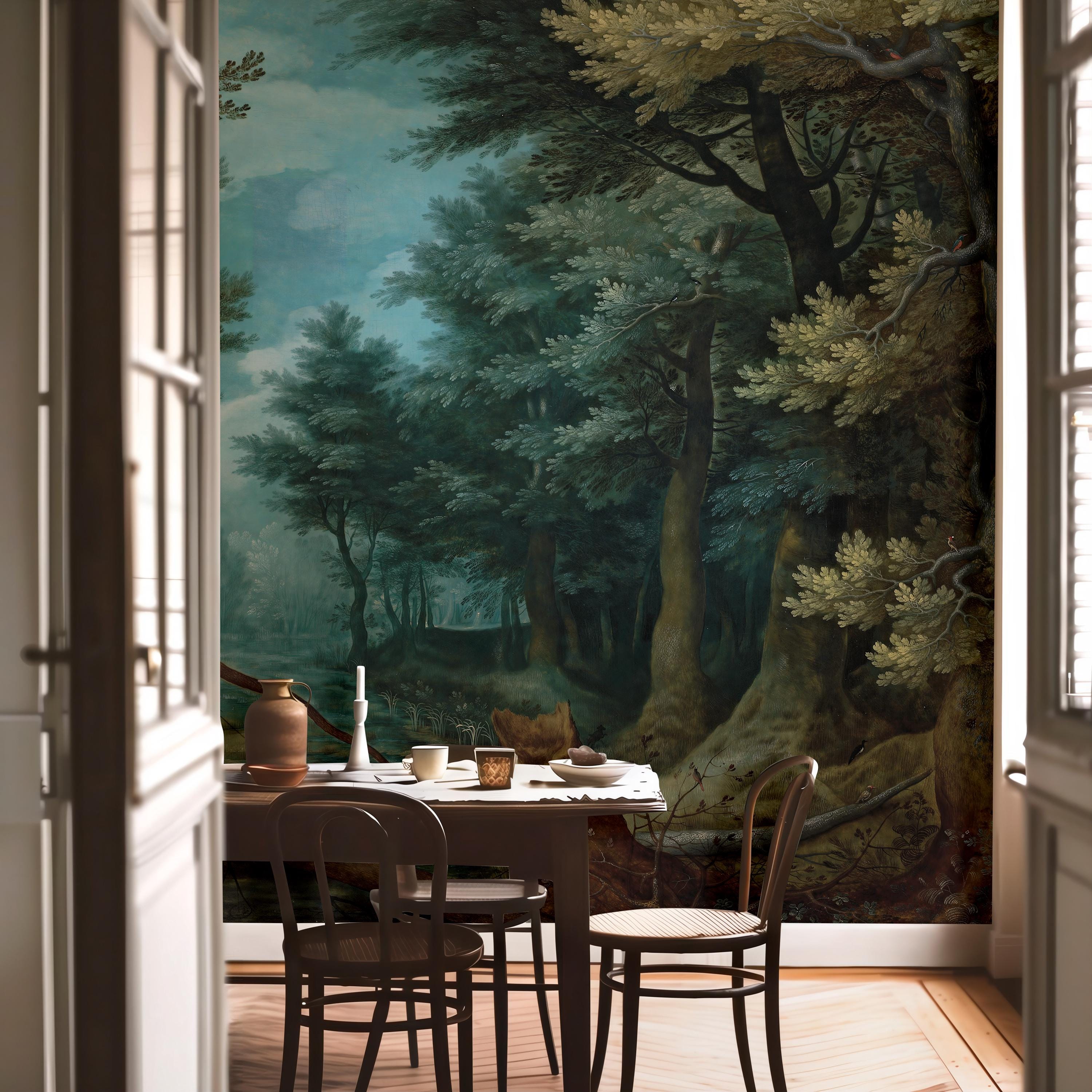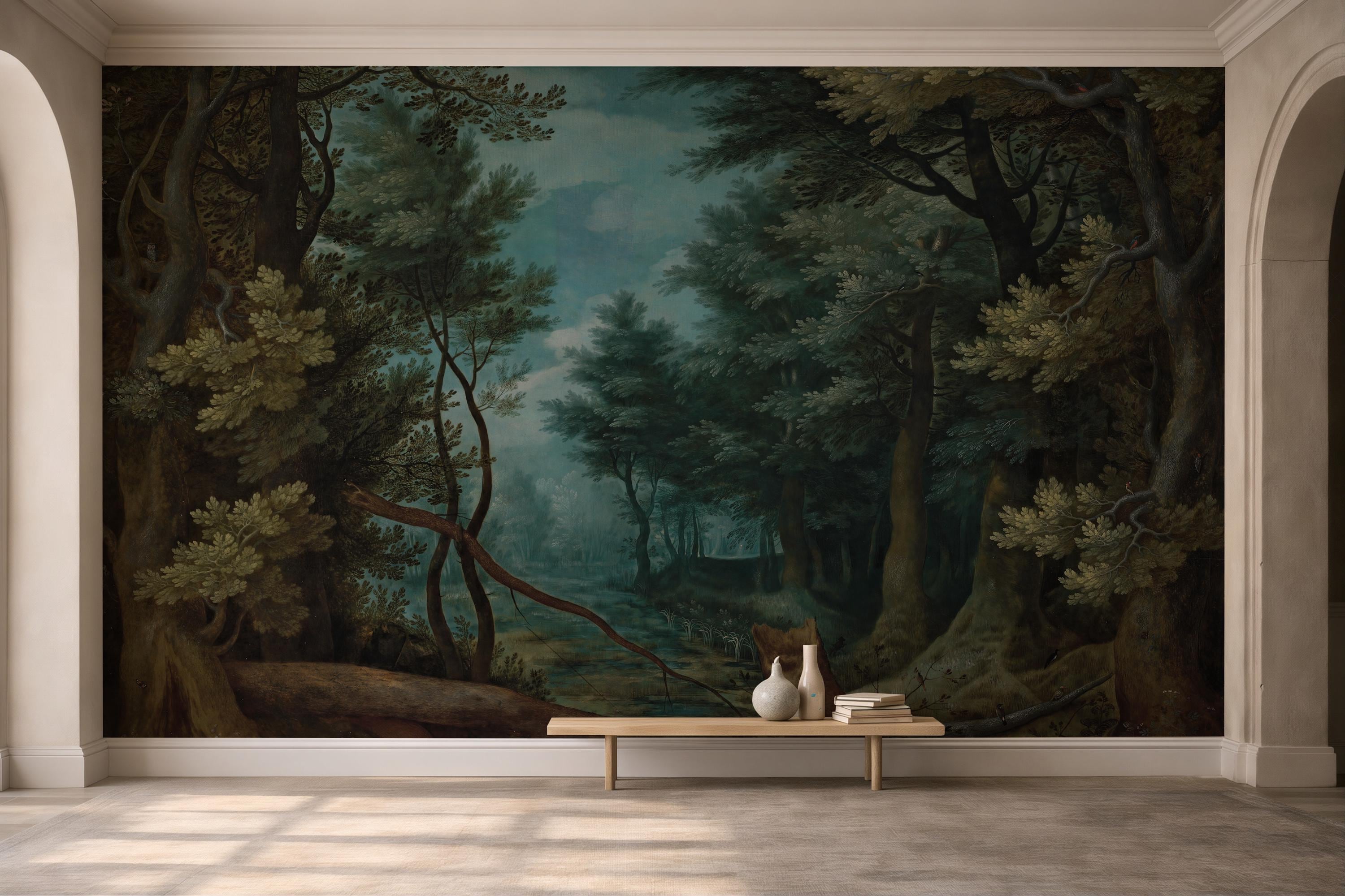Inspired by vintage landscapes and natural woodland scenes, this design adds a timeless, artistic feel while maintaining a modern, high-end aesthetic.