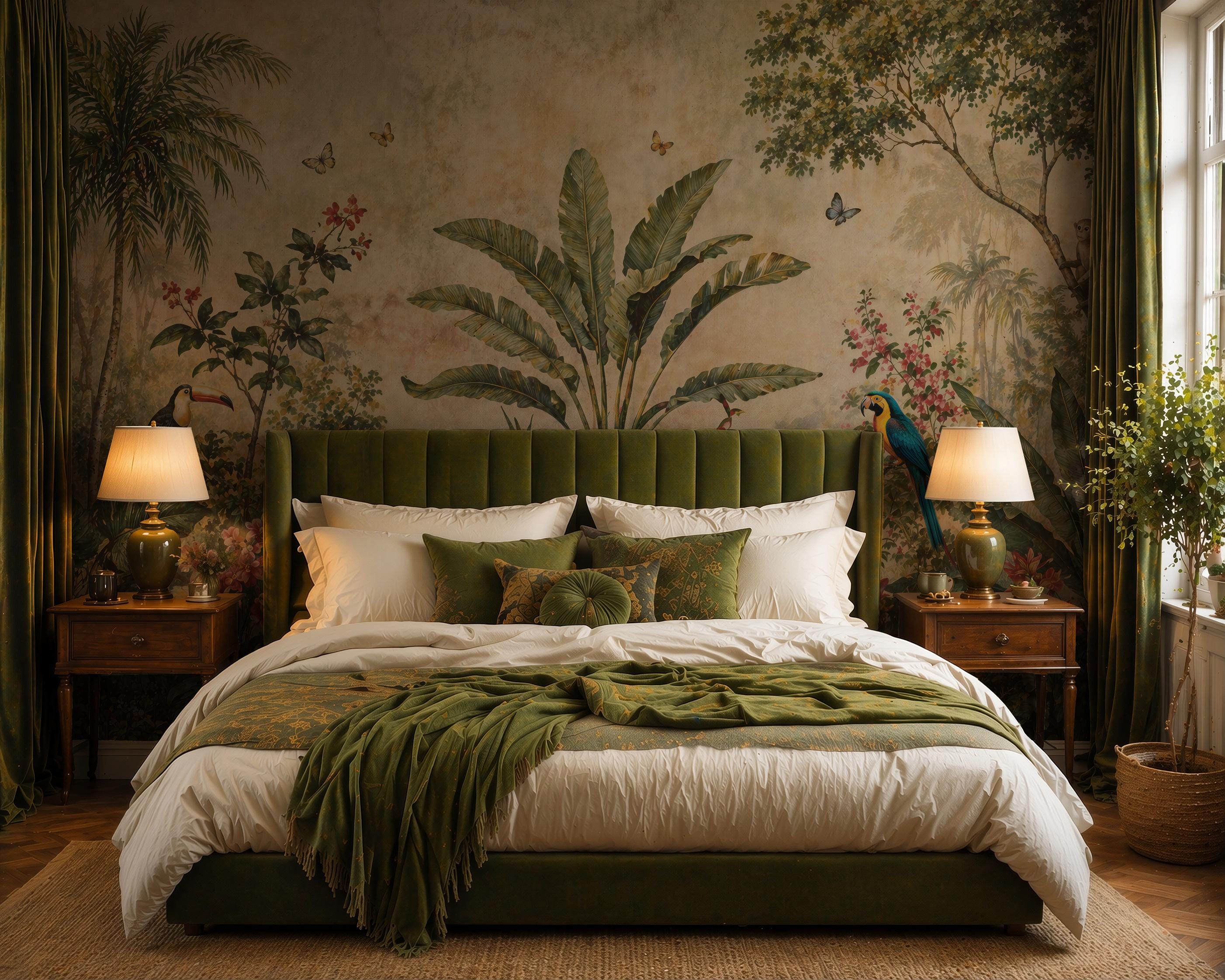 Perfect for living rooms, dining areas, or statement walls, this design blends chinoiserie charm with tropical sophistication, creating a unique and unforgettable atmosphere.