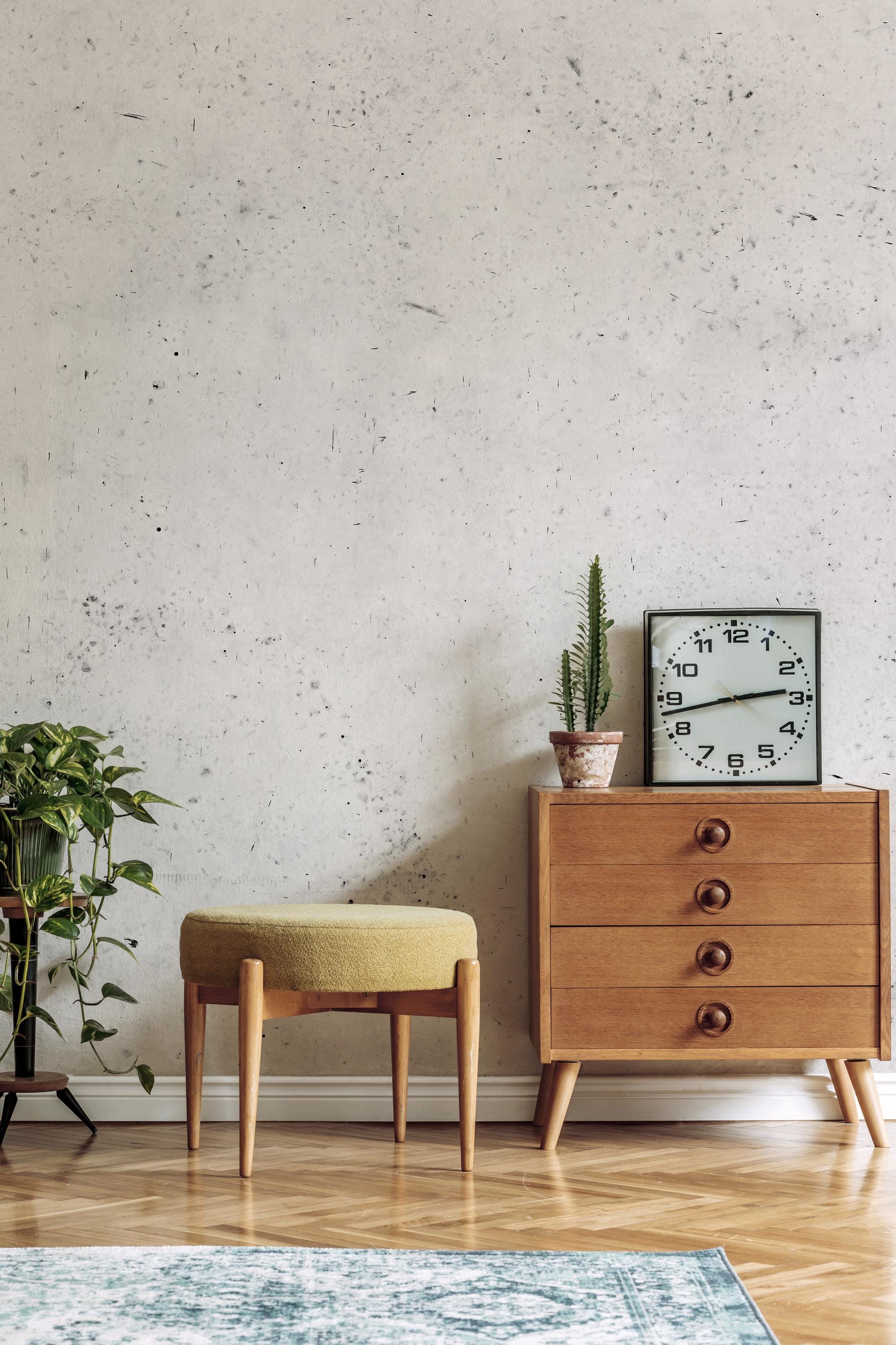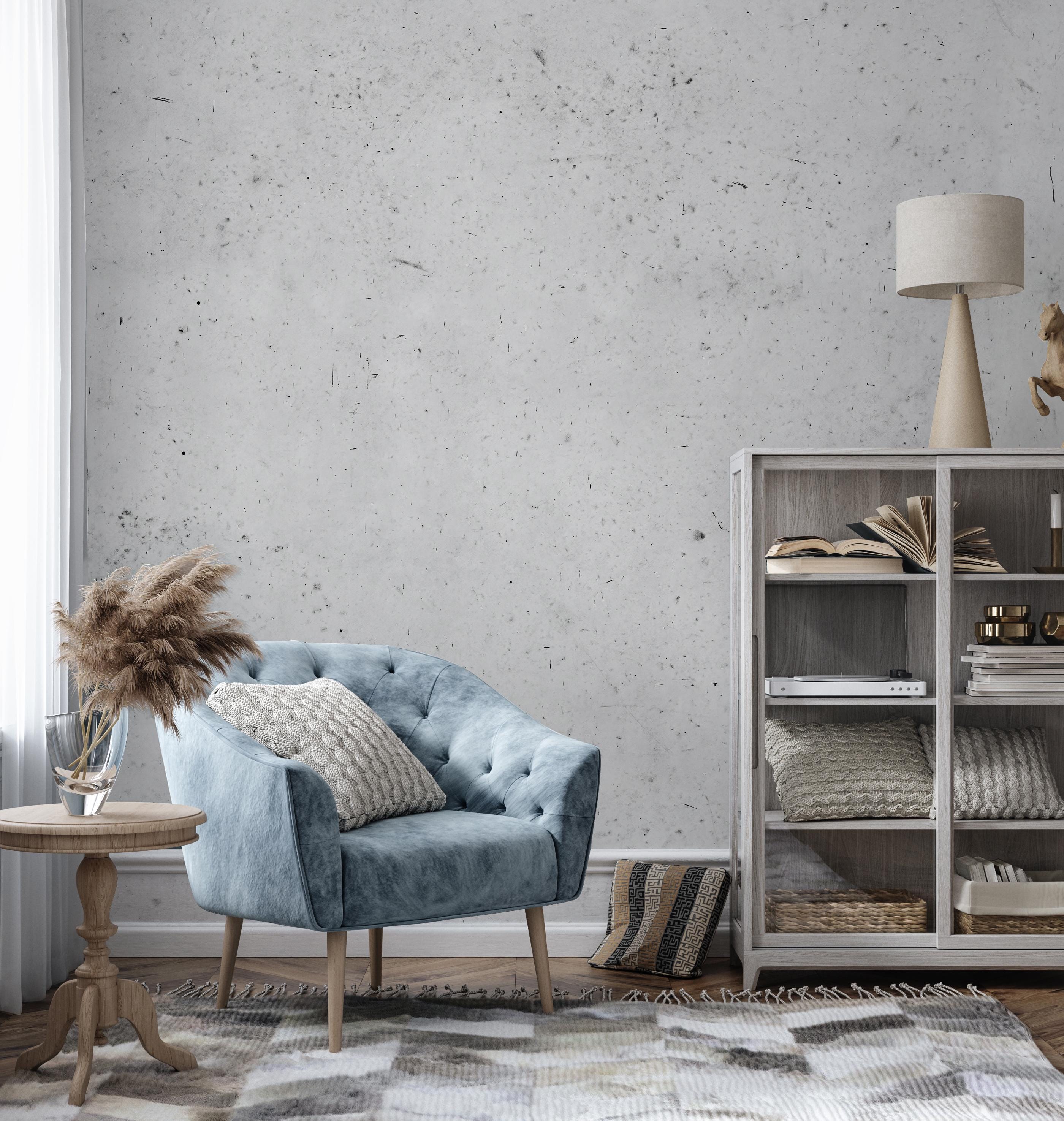 Inspired by raw concrete and urban textures, this wallpaper pairs perfectly with wood, metal, and neutral tones.
