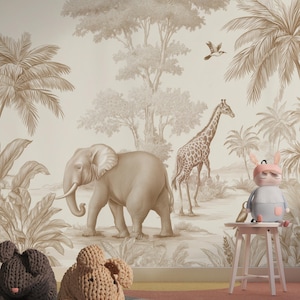 Transform your child's room into a magical sky adventure with our enchanting watercolor wallpaper! This charming mural features a serene blue sky filled with delightful hot air balloons carrying adorable animal friends, alongside playful airplanes soaring through fluffy clouds. The whimsical design and soft, muted tones create a peaceful and inspiring space, perfect for sparking your little one's imagination and dreams of exploration.