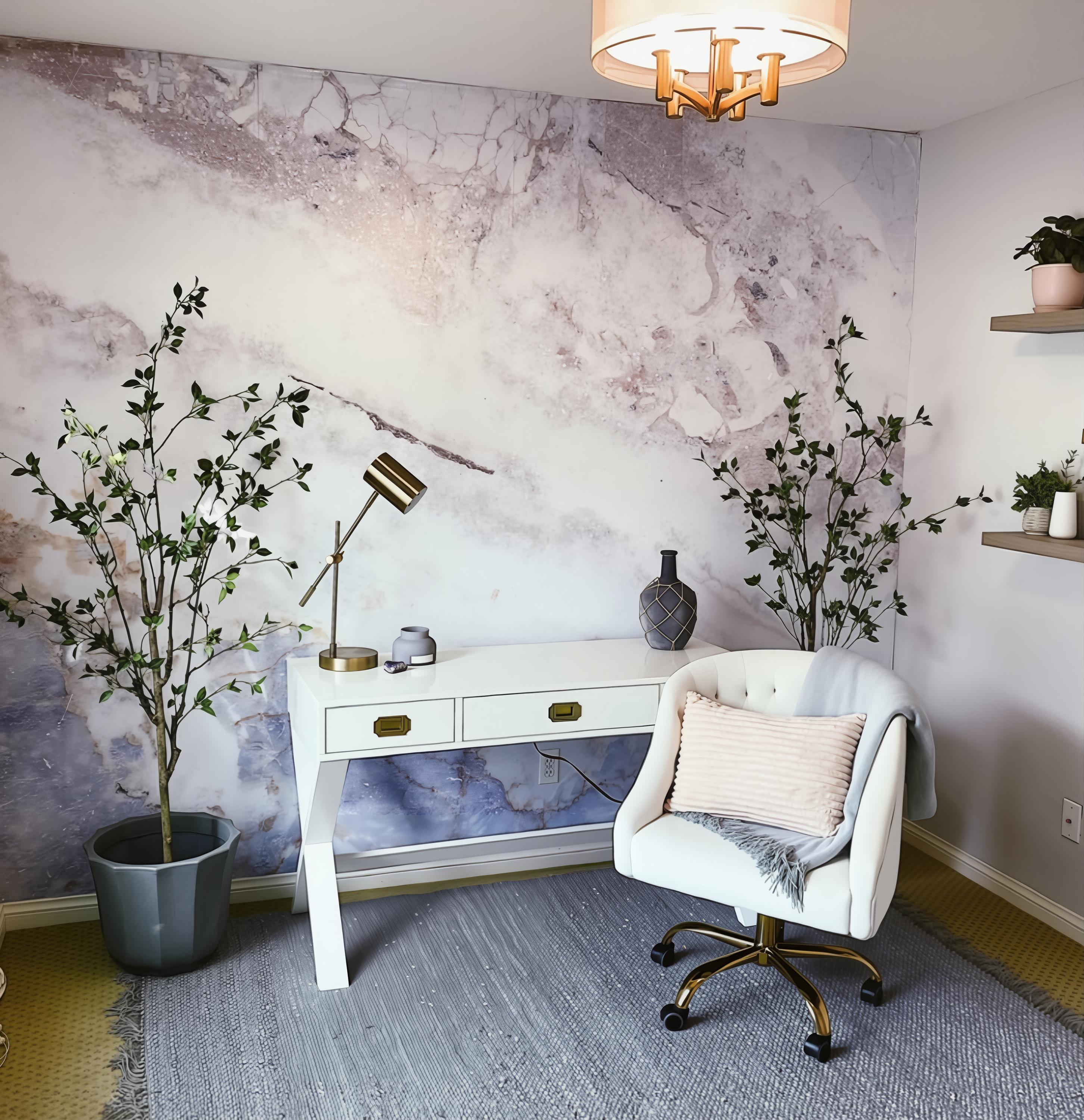 Transform your space into a luxurious sanctuary with our stunning pastel marble wallpaper. This captivating mural features a harmonious blend of soft pinks, gentle purples (lilac), and calming whites, brought to life with delicate gold-toned veins that shimmer across the design. The fluid, abstract patterns create a sophisticated and modern atmosphere, making it a perfect statement piece for a bedroom, elegant living room, or a chic home office.