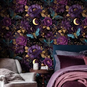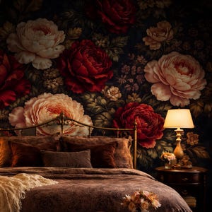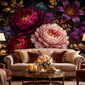 Dark Floral Wallpaper | Peel and Stick Removable Spring Flowers Wall Mural